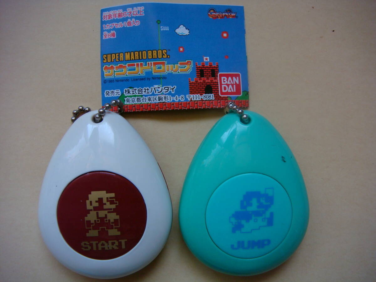 - 動作確認済 サウンドロップ スーパーマリオブラザーズ 2種セット+チラシ付き START JUMP ガチャガチャ キーホルダー ファミコン