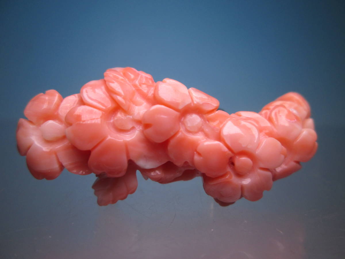 - ☆本珊瑚 小花彫刻の帯留め 11,4g