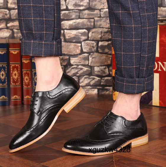 - 人気品ビジネスシューズメンズシークレット革靴お洒落PUレザー紳士靴ウイングチップ ブローグスリッポン 24~27.5cm 黒
