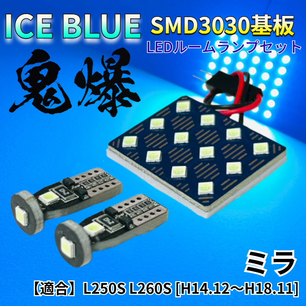 > 【アイスブルー】ミラ L250S L260S [H14.12~H18.11] 鬼爆基板 3030SMD LED ルームランプ セット 車内灯 室内灯 パーツ アクセサリ