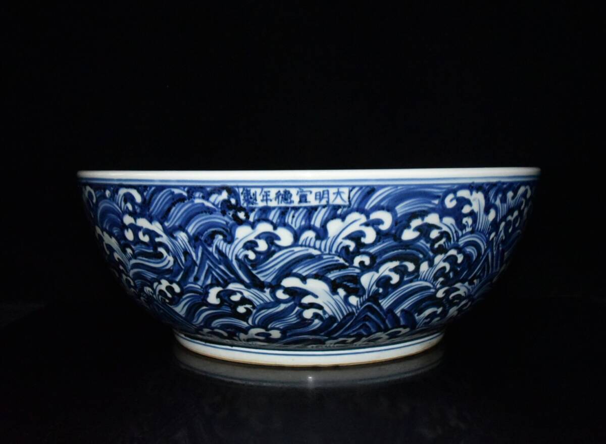 - 【超珍館蔵】明 宣德年製款 古陶瓷品 青花 海水龍紋 供碗 置物 古賞物 古美術品 稀少珍蔵品