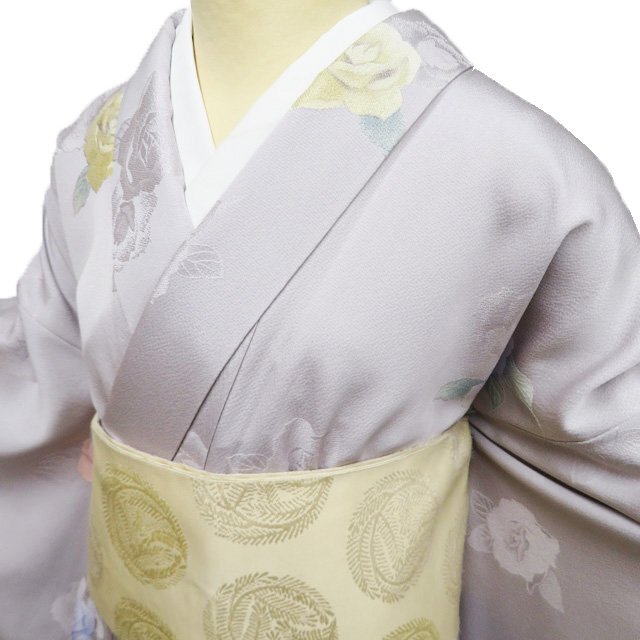 > 小紋 着物 中古 正絹 袷 カジュアル 花模様 地模様 バラ 薔薇 薄色 多色 身丈166.5cm 裄69.5cm L トール きもの北條 A1176-7