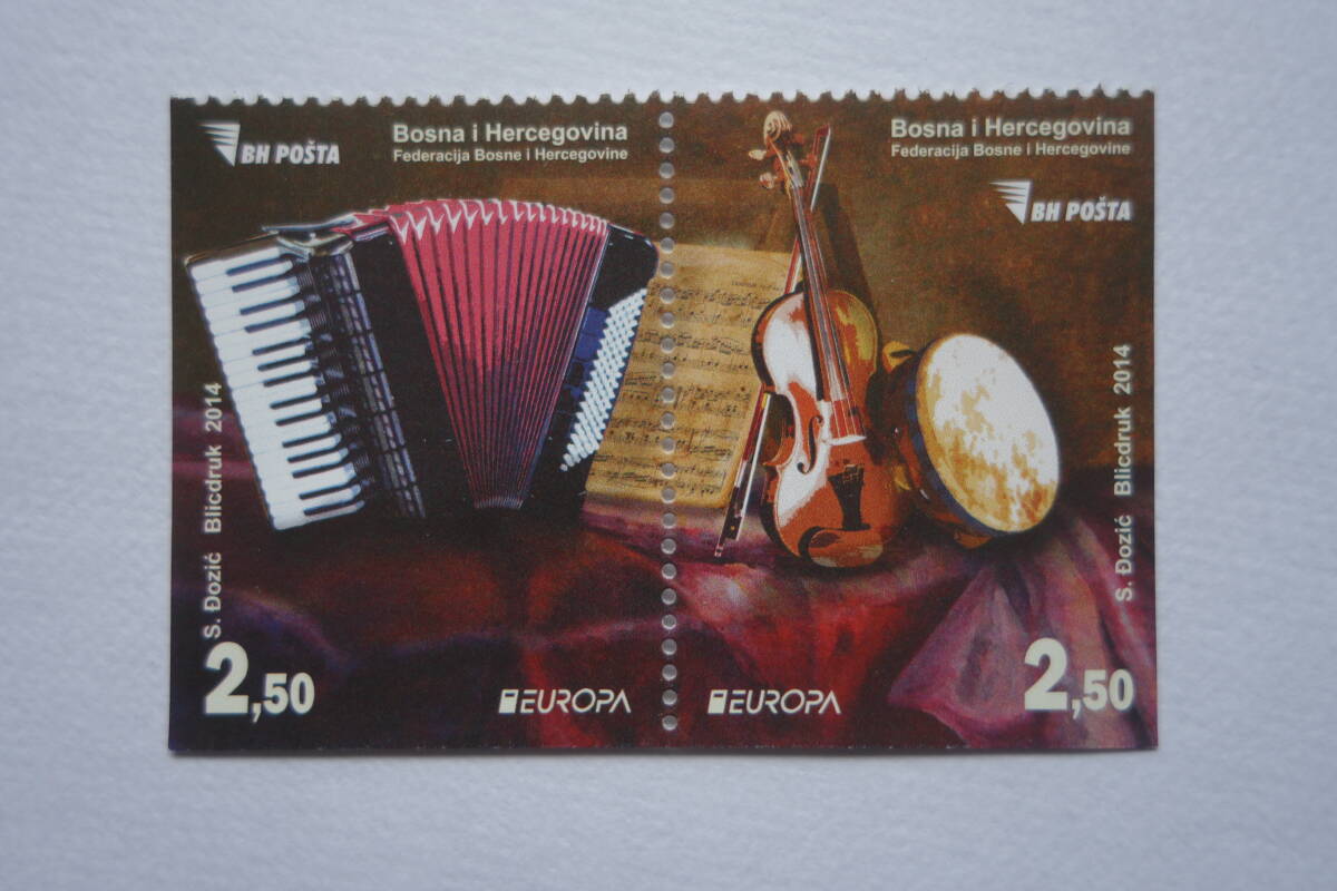 - 外国切手: ボスニア・ヘルツェゴビナ切手 「(2014年ヨーロッパ切手)共通テーマ・音楽」 2種連刷 未使用