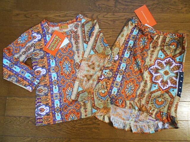 > Invoice Bambini/日本製☆キッズ100-110cm☆おしゃれでおしゃまなヒッピーチックセットアップ(Tシャツ+スカート) 未使用品 定価¥10.800