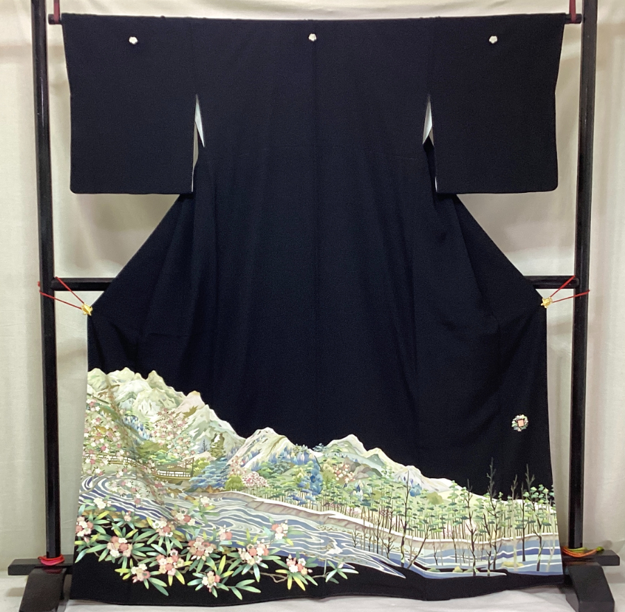 - 中古品 正絹 黒留袖 京加賀友禅 蔦 比翼仕立て 25110 t