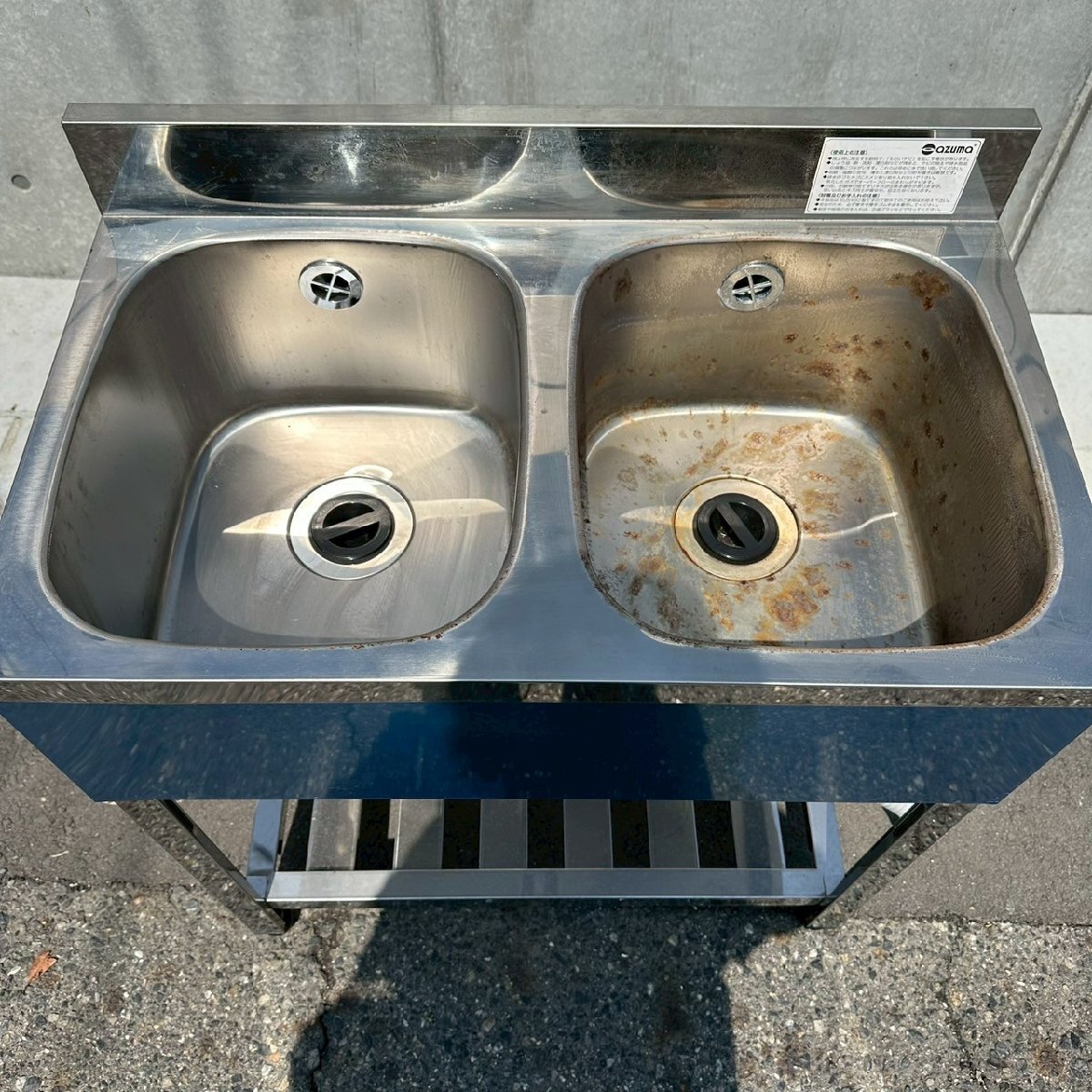 > ∞OG∞ 【片方錆びあり】アズマ 二槽シンク シンク 厨房設備 W750×D450×H800 BGH90×D25 レベル調節可 ∞N-250409