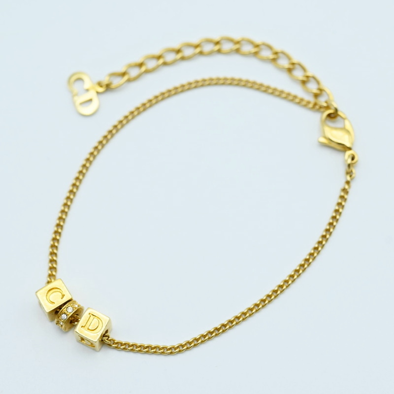 > K04-k022 Christian Dior クリスチャンディオール キューブCDロゴ ラインストーン GP ブレスレット ゴールド