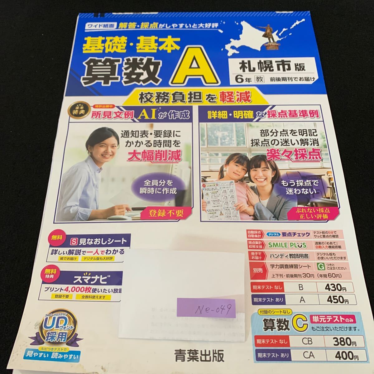 - Ne-049/算数A/基礎基本/6年生/札幌市版/青葉出版/文字を使った式/対称な図形/分数のかけ算/分数のわり算/L7/70416