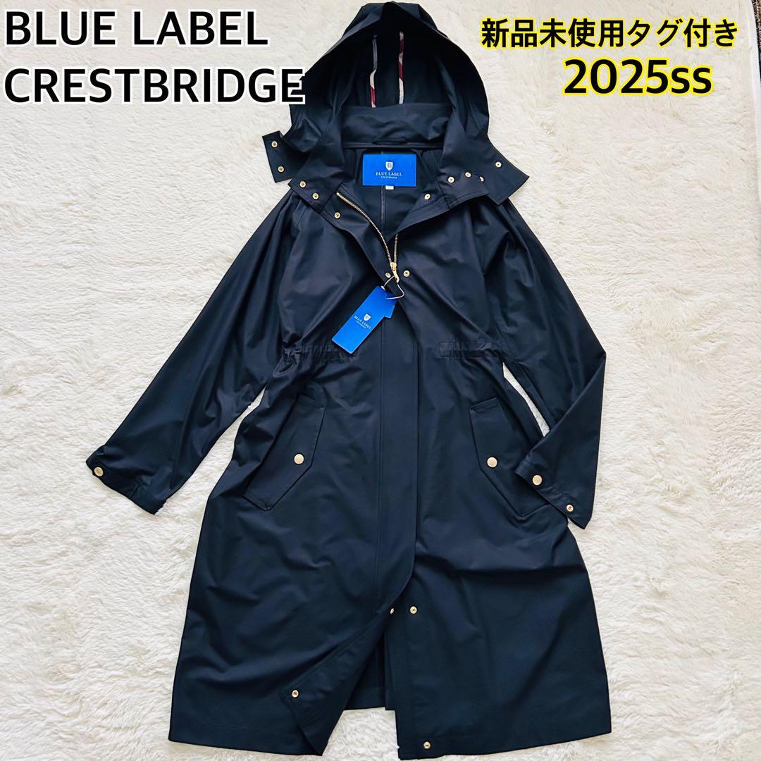 > 【新品未使用】25ss BLUE LABEL CRESTBRIDGE クレストブリッジ ストレッチ ロングマウンテンパーカー コート 撥水 ネイビー 36 S