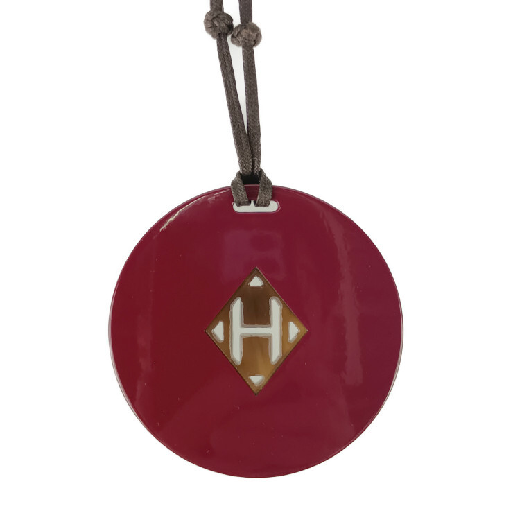 > 美品 HERMES エルメス ネックレス Hロゴ ボルドー系 ブラウン系 バッファローホーン ラッカー ペンダント【本物保証】