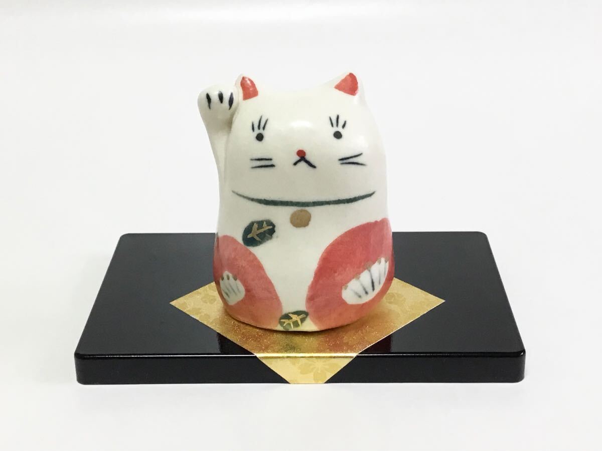 - 招き猫置物 手描き 招猫・椿 瀬戸焼 新品