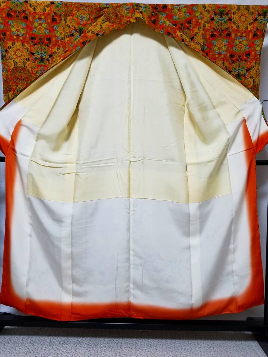 > 【桐徳】小紋☆インド更紗☆送料無料*仕付け糸付{正絹*三越縮緬地*更紗*袷.小紋}身丈158-裄65*2色.暈し染地*多色染めの多種類文様*№7096