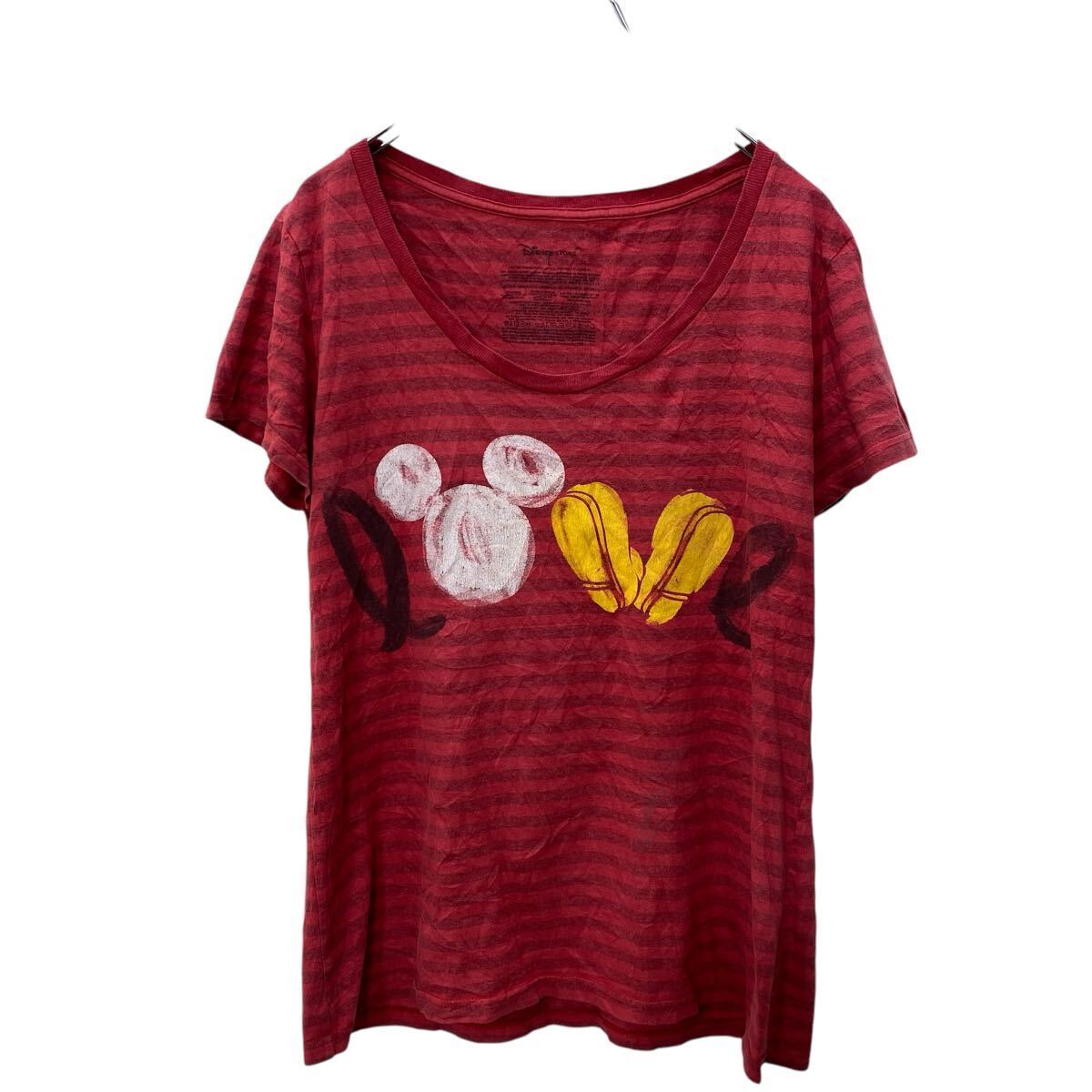 - Disney 半袖 プリントTシャツ レディース L レッド ボーダー ディズニー 古着卸 アメリカ仕入 a704-5775