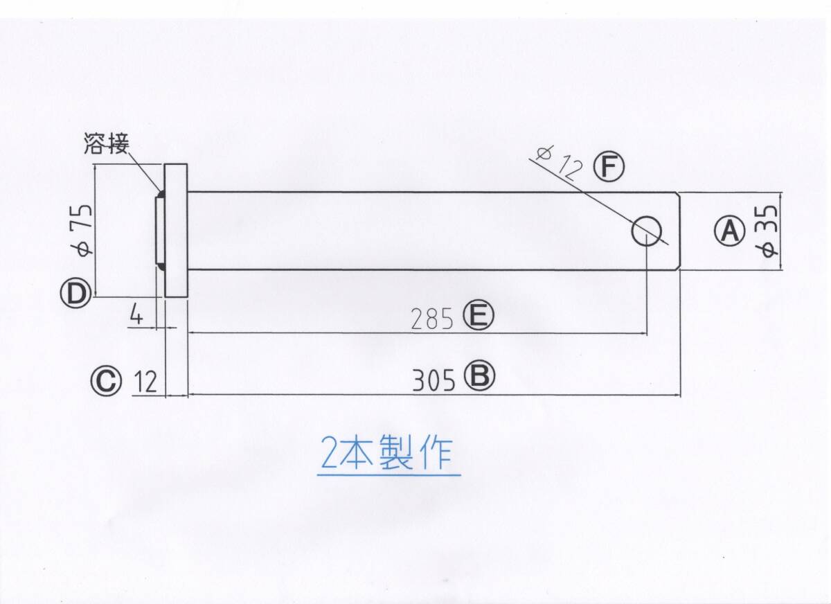 - NO 2028 Φ35用 溶接ツバ下305mm バケットピン 2本1セット