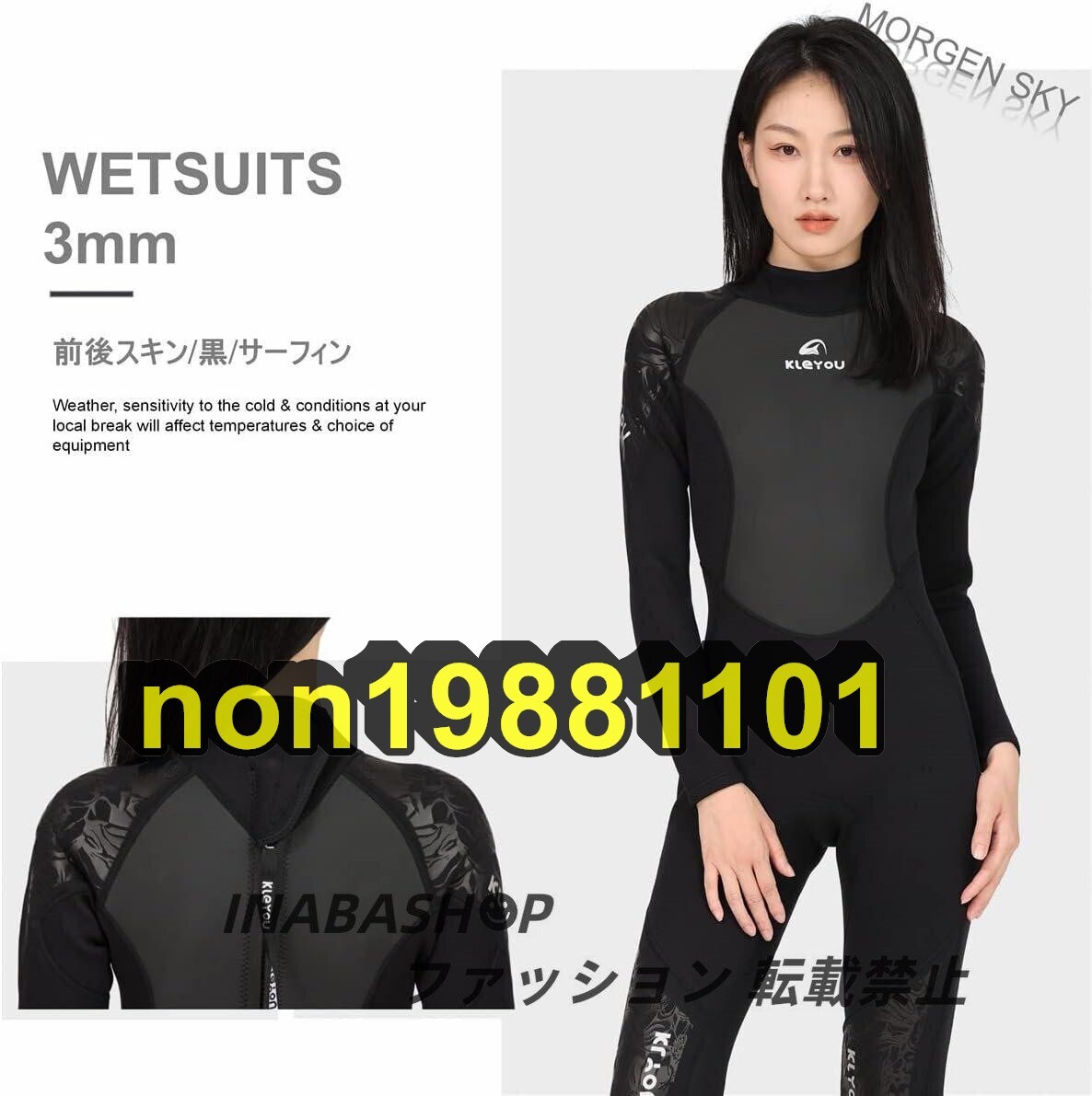 - ウェットスーツ レディース フルスーツ 3mm 長袖 ワンピース ネオプレン素材 ダイビング サーフィン シュノーケリング フィッシング S-2XL