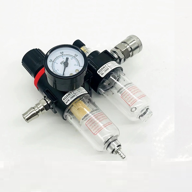 > 人気品未使用エアフィルター レギュレータ ルブリケータ圧力調節 水分除去 オイル混合 圧力計 1/4 オス メス カプラー 各1個付属