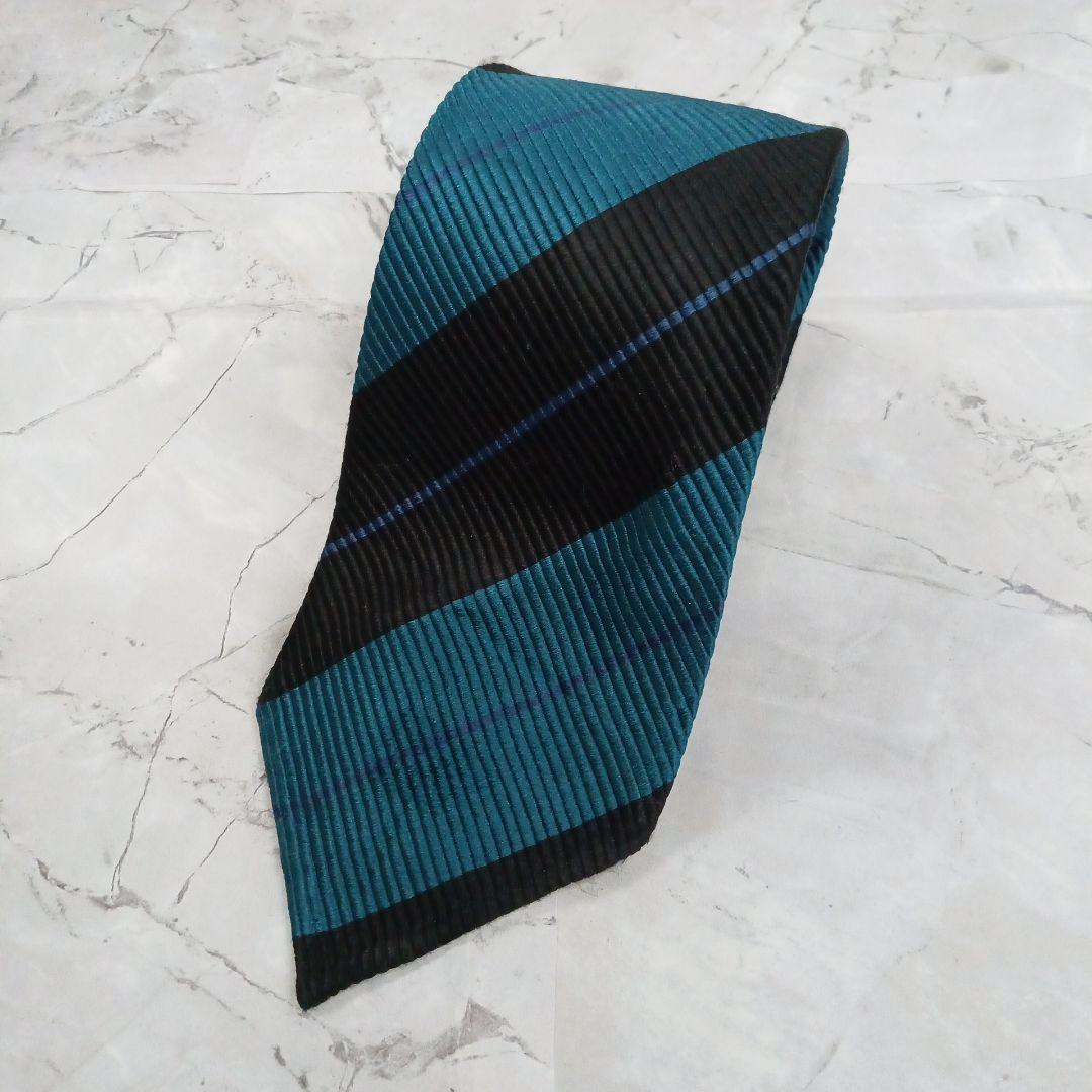 - ユナイテッドアローズ ネクタイ 青緑色 黒 ストライプ柄 絹【n1305】