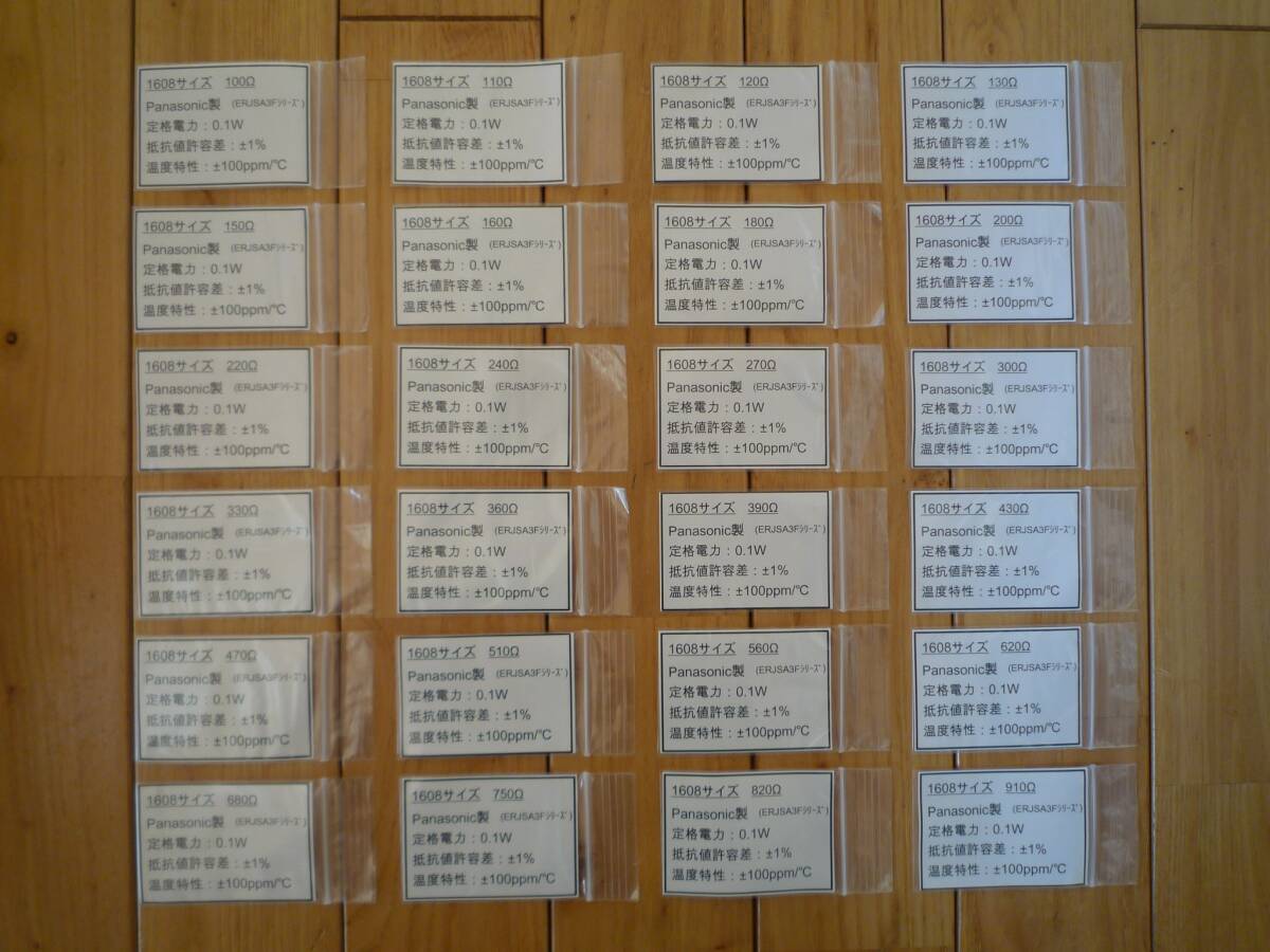 > Panasonic製 ERJSA3Fシリーズ 1608サイズ 0.1W±1% チップ抵抗 100Ω~910Ω 30個×24種類セット(全720個) 新品未使用