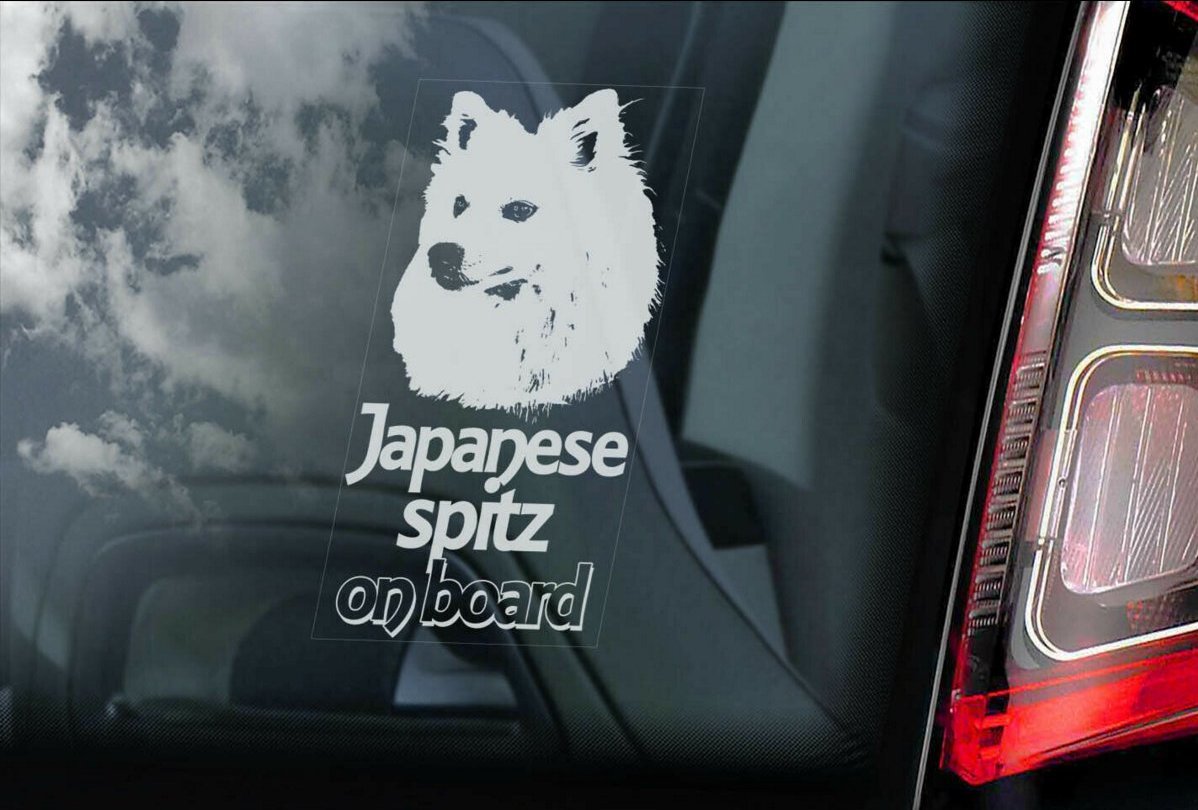 - ◆ジャパニーズ スピッツ/日本スピッツ 外張り カーステッカー 20x10cm 外貼り カー ステッカー シール@DOG ON BOAD@D2 犬 3030