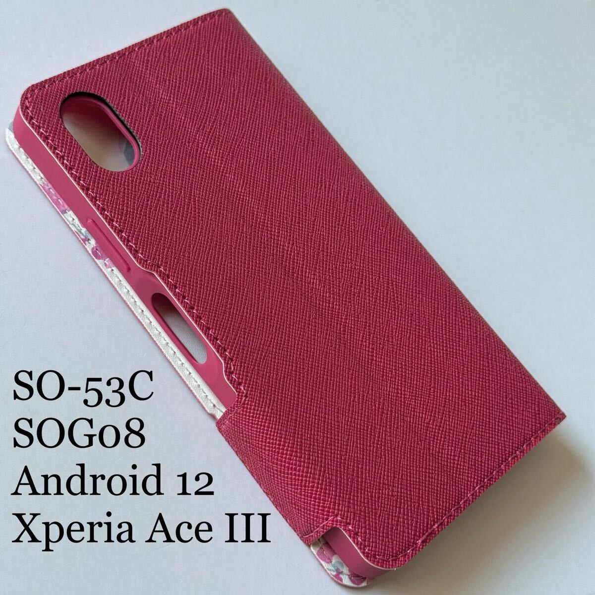 > Xperia Ace III(SO-53C/SOG08/Android 12用スリムレザーケース★内側花柄サイドマグネット付スタンド機能付カード入付★フラワーズエレコム