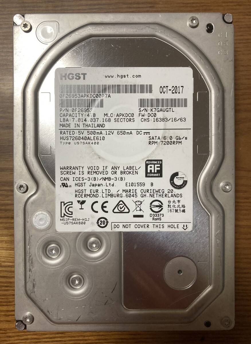 > 【状態◎】日立 Hitachi/HGST Ultrastar 7K6000 HUS726040ALE610 3.5インチ HDD 4TB(高耐久性と低消費電力を備えたモデル)