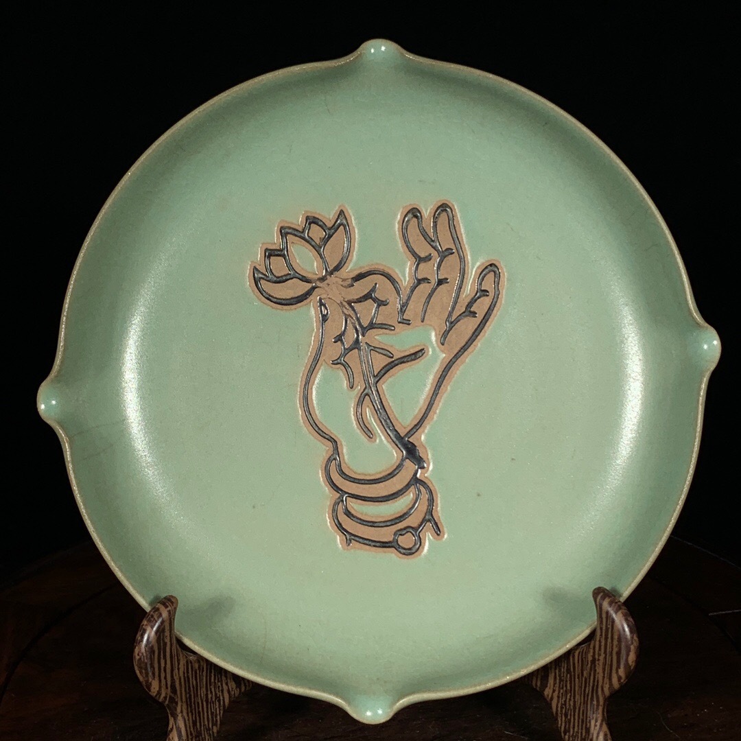 - ▽鴻▽ 宋 汝窯 仏手蓮花紋 花口盤 古陶瓷品 置物 古賞物 中国古玩 中国古美術