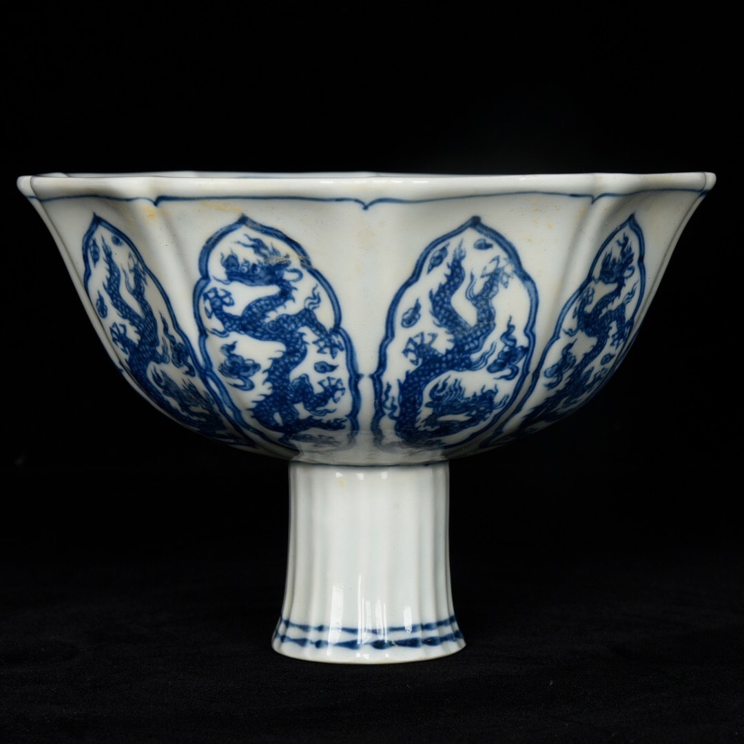 - 『館蔵珍品 明 宣德年製款 古陶瓷品 青花 龍紋 高足碗』置物 賞物 貴重物品 収蔵品 中国古美術