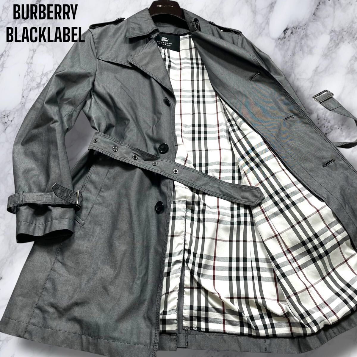 > 希少デニム調/極美品◎バーバリーブラックレーベル ノバチェック トレンチコート ベルト ロング丈 BURBERRY BLACKLABEL メンズ グレー M