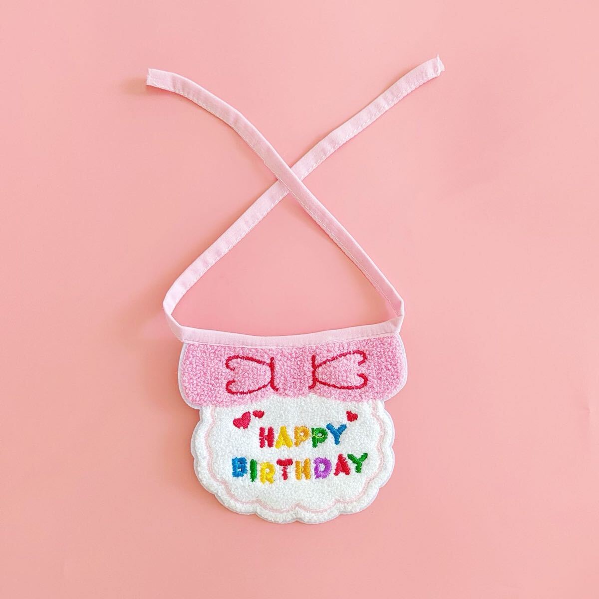 - 【ピンク】犬用スタイ 誕生日 犬 猫 グッズ ハッピーバースデー よだれかけ