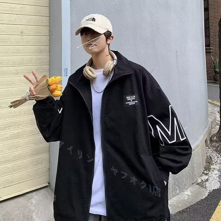 - メンズ ジャケット ブルゾン アウター トップス 英文字 大きいサイズ 韓国風 長袖 春秋 ゆったり カジュアル (M-3XL)