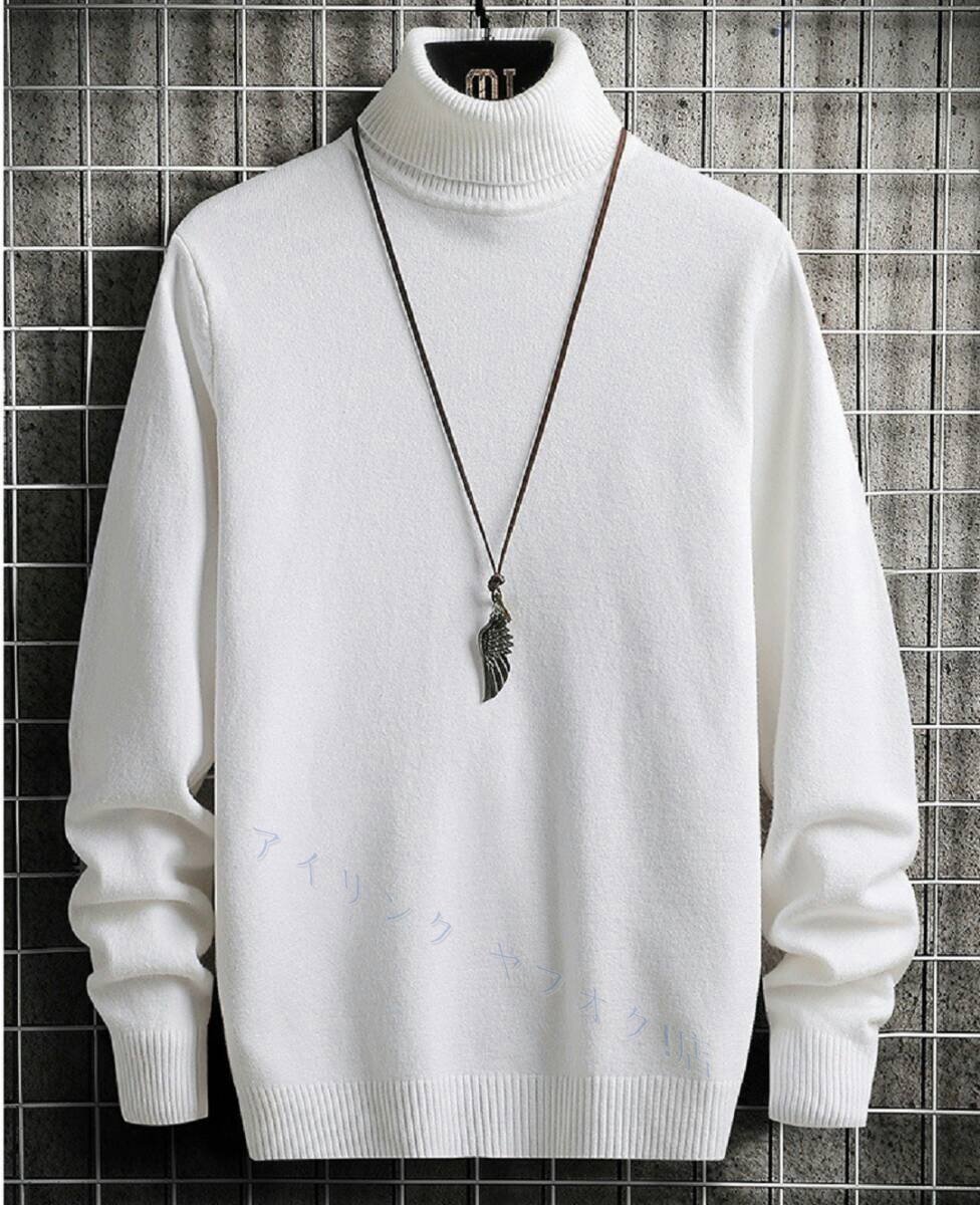 - ニットセーター 秋冬 メンズ タートルネック 柔らかい ウール混 カップル 無地 スリム 上質 紳士 七色選択 S ホワイト