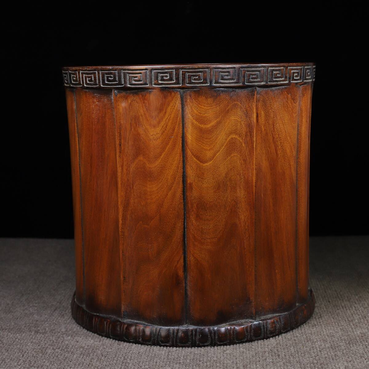 - 旧蔵 大清 花梨木 圓筆筒 筆道具 文房具 木製 極細工 中国古玩 古美術 骨董品 204-22