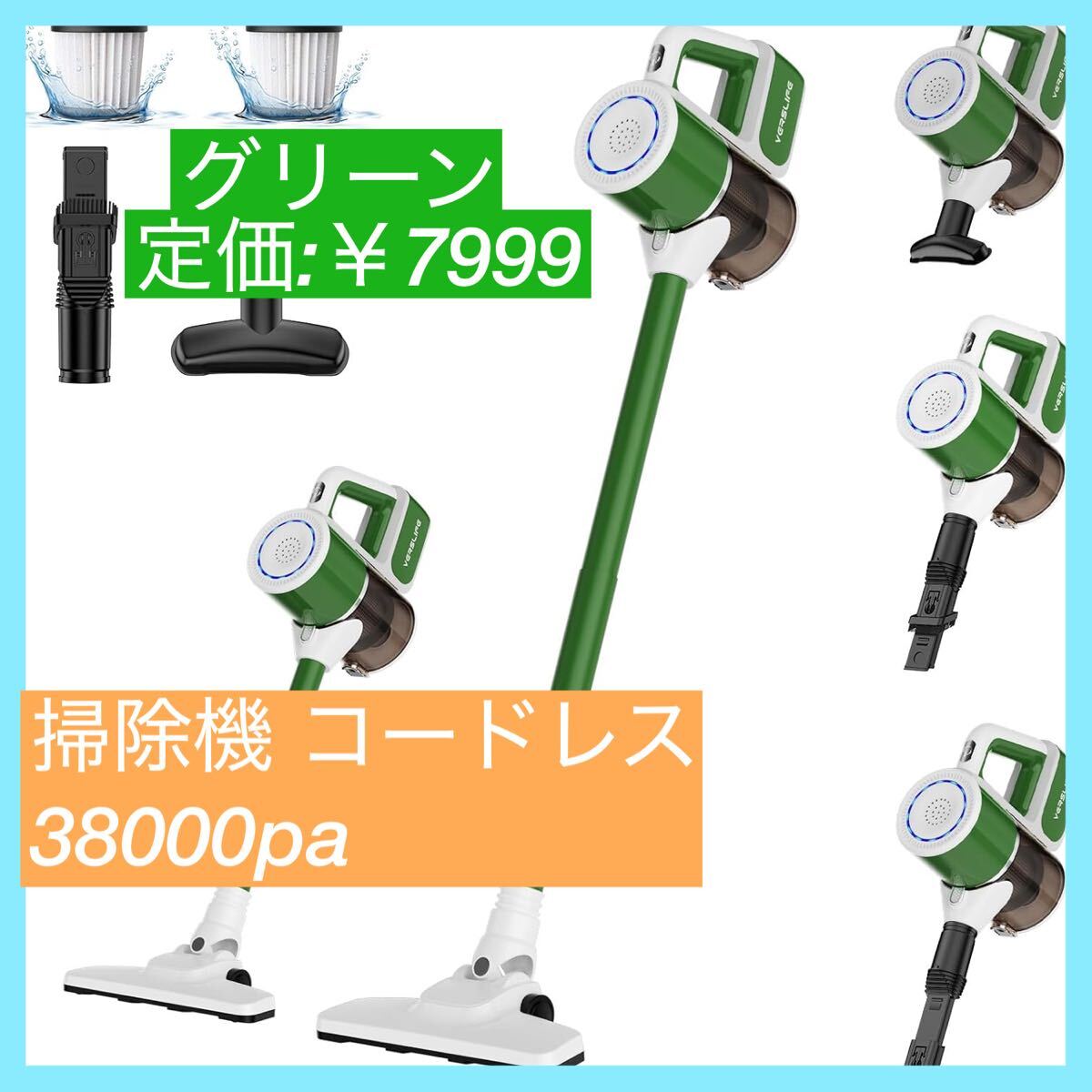 - 【大特価】掃除機 コードレス 38000pa PSE認証済 (グリーン) 緑