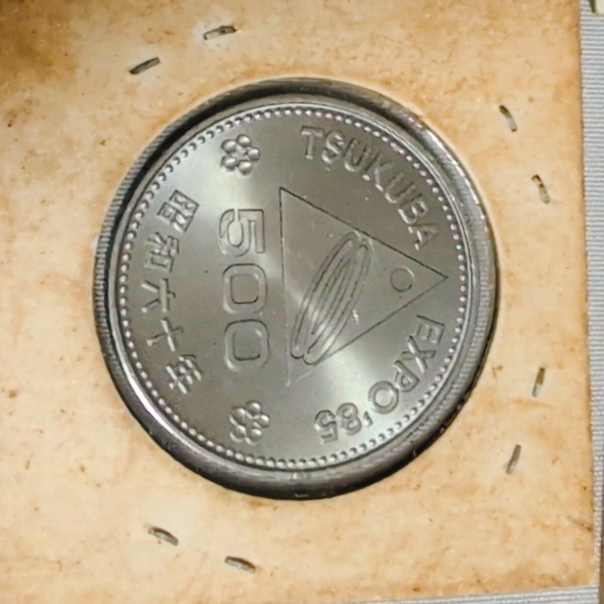 - 1985年発行のつくばエキスポ500円記念硬貨、桜と山のデザインが特徴。超美品