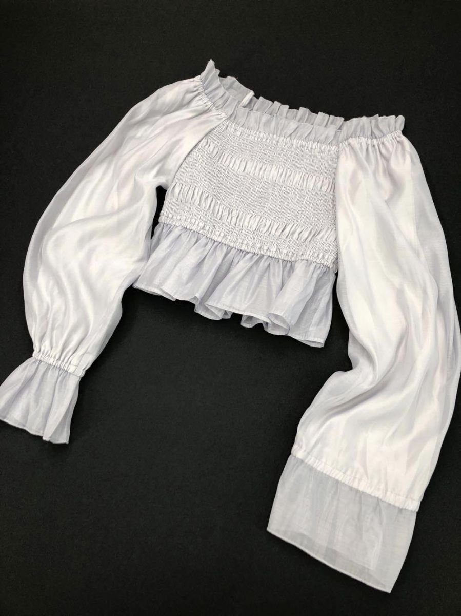 - ゆうパケットOK アンミール シャーリング オフショル フリル シアー ANT-093 ブラウス シャツ グレー ◇■