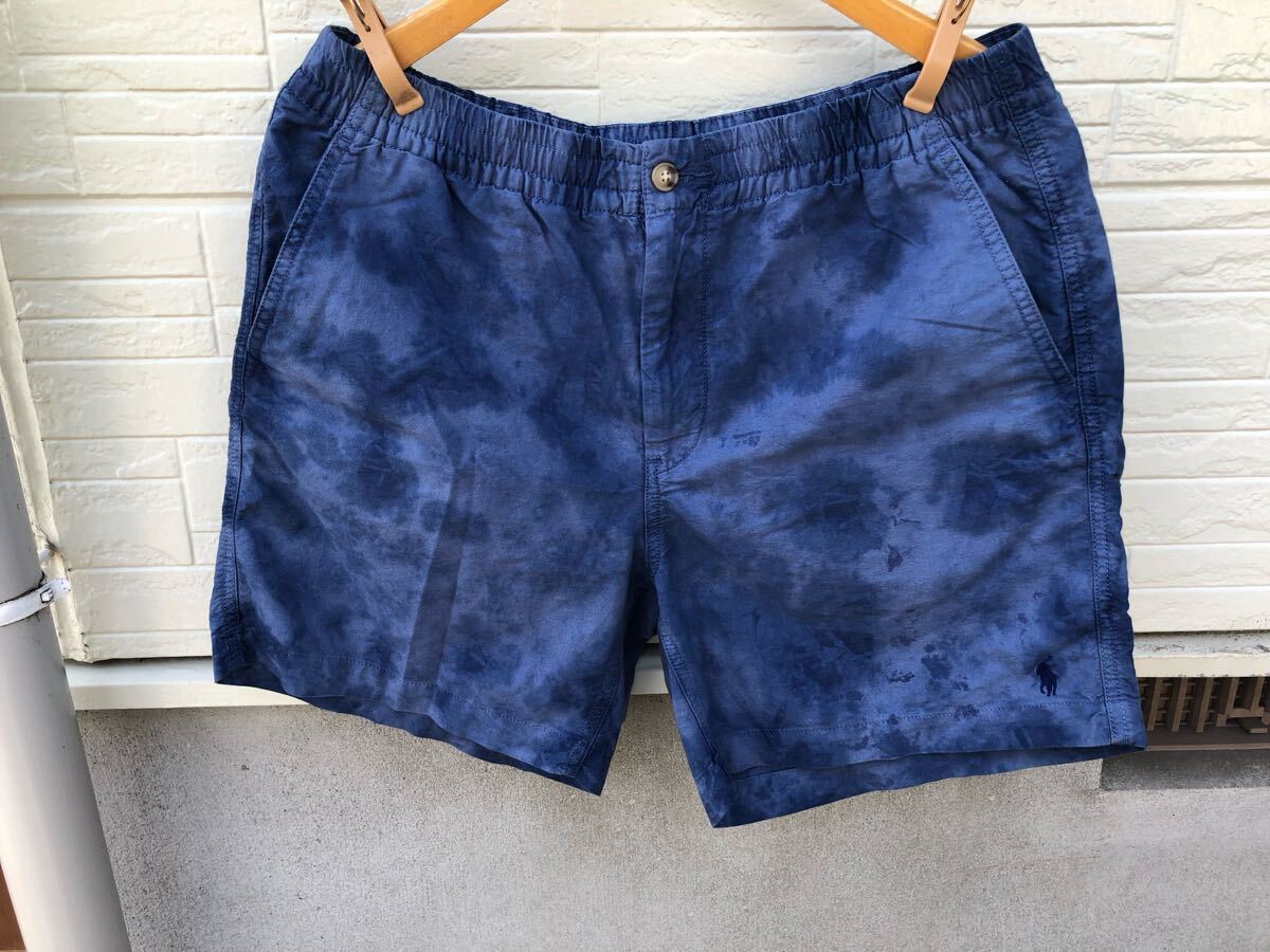 > 美品 POLO ラルフローレン ラルフ ショートパンツ 短パン ハーフパンツ イケオジ OCEANS ゴルフ タイダイ ネイビー 染め 2nd 古着 RRL F&E