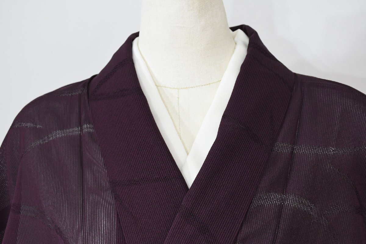 - 色無地 夏着物 薄物 パーティー 披露宴 お茶会 蒲萄色 身丈151cm 裄丈63cm ★着物 ia-1117 桜庭呉服店
