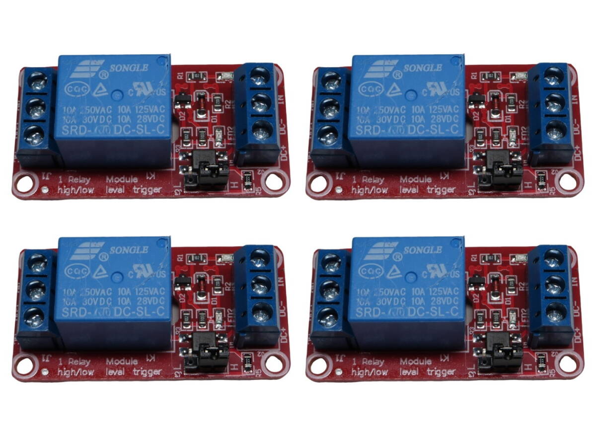 - 汎用リレーモジュール DC-24V 4個 1ch トリガー信号電圧レベル切替ジャンパー付き SRD-05VDC-SL-C