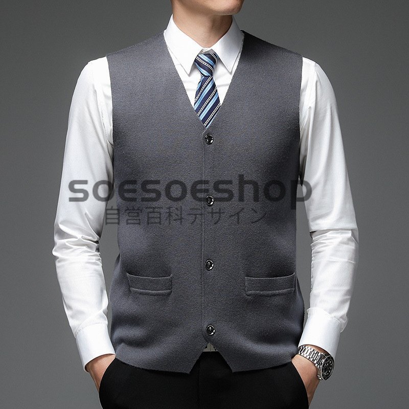 - 新入荷 ウール混 ニットベスト チョッキメンズ 秋冬 厚手 カジュアル Vネック ニットセーター/ダークミディアムグレー