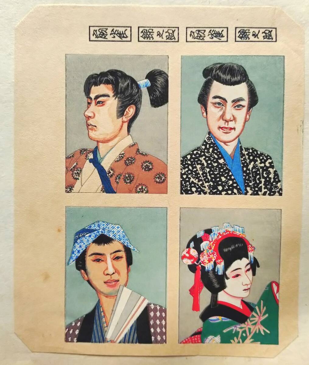 - f25042373〇彩色木版画 ハガキサイズ 映画スター 錦之助 扇雀 錦絵 浮世絵 昭和年代〇和本古書古文書
