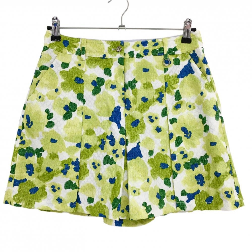 - 【超美品】アダバット キュロットスカート 白×ライトグリーン 総柄 織生地 バックロゴ レディース 38(M) ゴルフウェア adabat