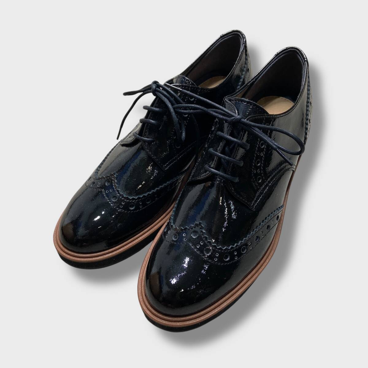 - ☆送料無料☆未使用☆ampio☆アンピオ☆黒☆エナメル☆ウイングチップ☆24cm☆厚底☆日本製☆D25M