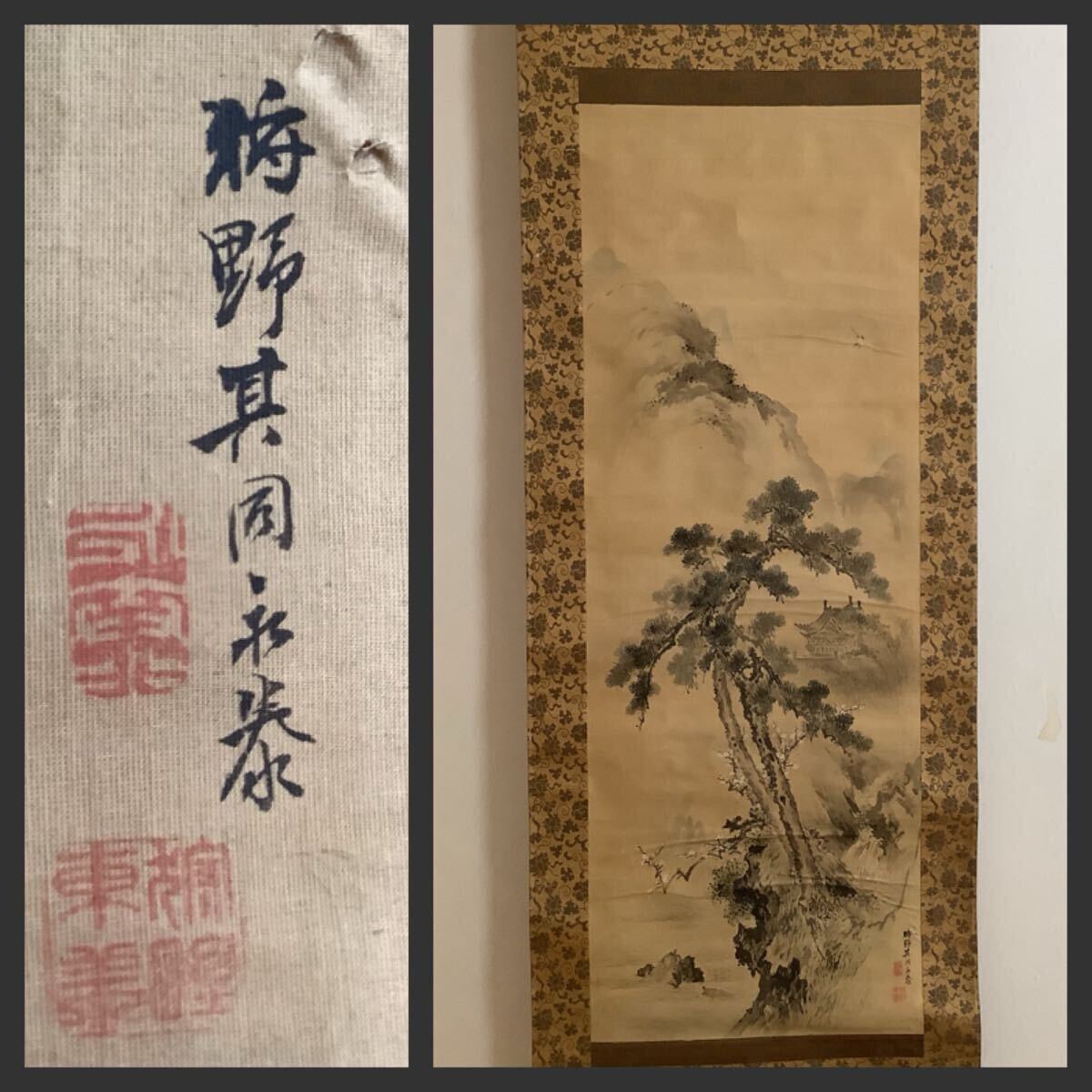 - 【模写】掛軸A777[狩野永泰其同 水墨山水図]絹本 書いたもの/日本画 松竹梅 鶴亀 古書 江戸時代後期 京狩野絵師 東美 式部