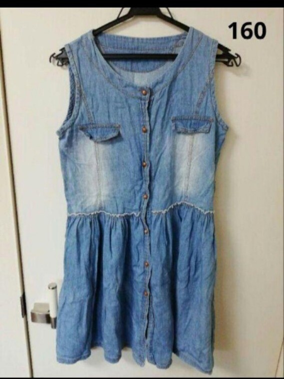 - キッズ女の子ノースリーブワンピース 薄デニム 160cm