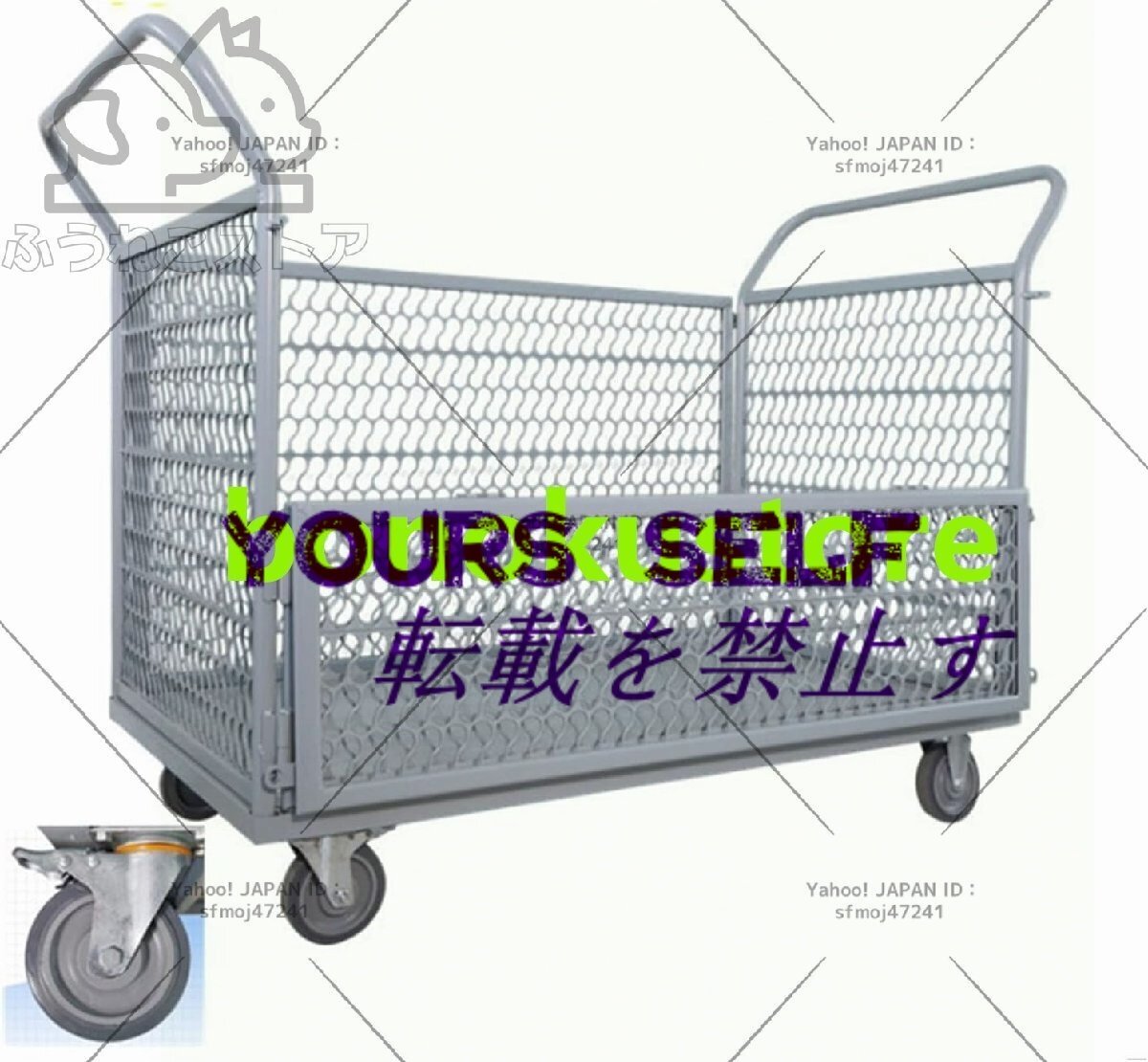 - カゴ台車 運搬車 手押し台車 静音 厚みのある素材 耐荷重300kg 耐磨耗 メッシュかご付き ブレーキ付き 折り畳み式のドア付き