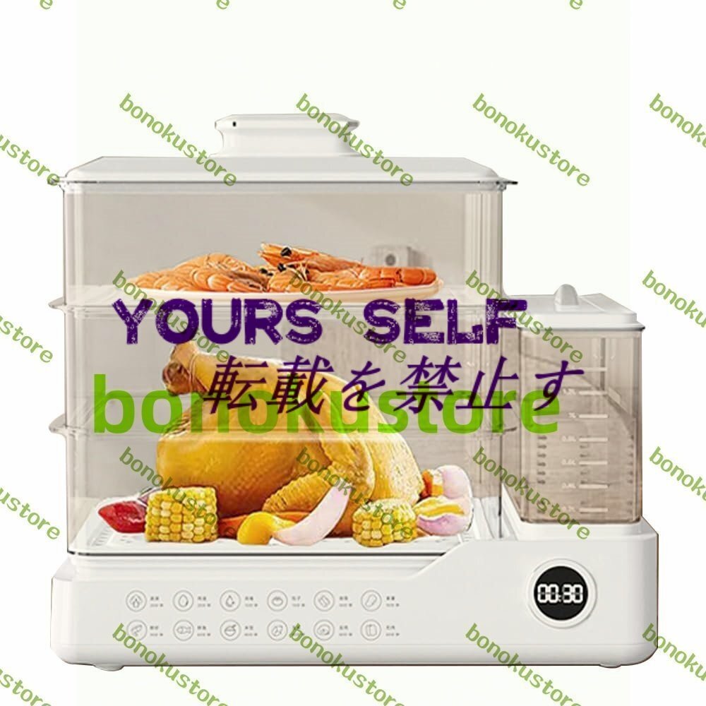- 電気蒸し器 3段調理 大容量24L 多機能 スチームクッカー 蒸し料理用アミ 自動電源オフ タイマー付 調理家電 スチーマー 蒸す ヘルシー