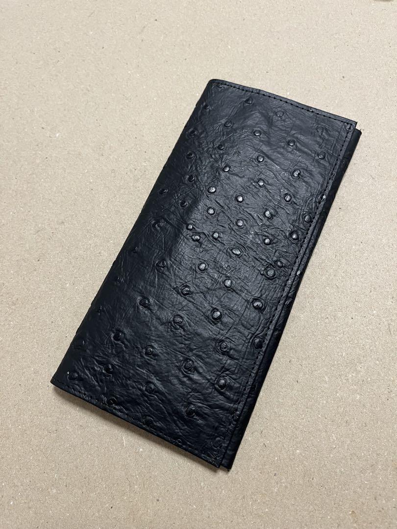 - オーストリッチ風 型押し 本革 札入れ 長財布 ブラック メンズ レディース兼用