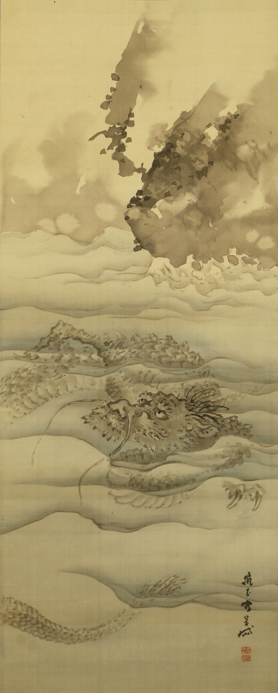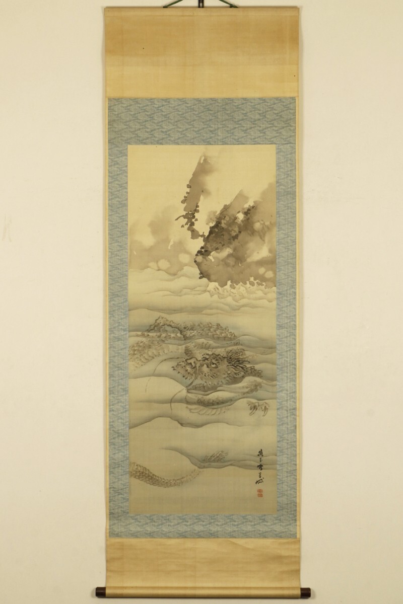 - 【真作 江戸動物画】掛軸「岸岱 水龍図」江戸後期 絵師 岸駒子 岸派二代目 京都画壇 金沢城内・金刀比羅宮奥書院・御所障壁画 絵画