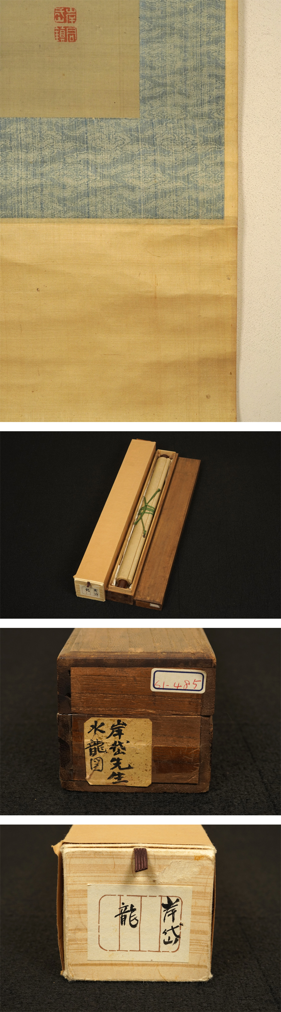 > 【真作 江戸動物画】掛軸「岸岱 水龍図」江戸後期 絵師 岸駒子 岸派二代目 京都画壇 金沢城内・金刀比羅宮奥書院・御所障壁画 絵画