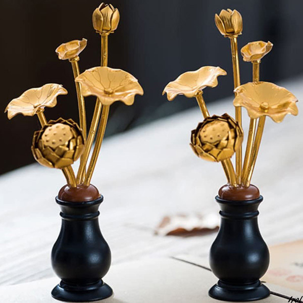 - 【蓮が仏の智慧や慈悲の象徴】 蓮 花びん付 花立付き 左右一対 2個セット 常花 仏花 常花セット お盆用品 金メッキ 金色蓮華 枯れない